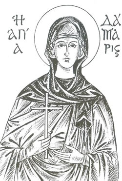 Αγία Δάμαρις είναι η πρώτη Αθηναία, που μαζί με τον Άγιο Διονύσιο Αρεοπαγίτη πίστεψαν στο κήρυγμα του Αποστόλου Παύλου. Το όνομα της δεν είναι ελληνικό, αλλά εξελληνισμένος τύπος του ιουδαϊκού ονόματος "Θαμάρ", που σημαίνει ότι δεν ήτανε Ελληνίδα αλλά κάποια Ιουδαία μέτοικος στην Αθήνα.