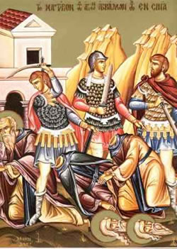 Ἀλλά καί πρίν ἀπό πολλά χρόνια, ἐπί τῆς ἐποχῆς τῆς βασιλείας τοῦ Διοκλητιανοῦ (284 – 305 μ.Χ) καί ὅταν Πατριάρχης Ἀλεξανδρείας ἦταν ὁ Πέτρος (300 – 311 μ.Χ.), ἐφονεύθησαν καί ἄλλοι Ὅσιοι Πατέρες πού ἡσύχαζαν στό ὄρος Σινᾶ. Συγκεκριμένα, στό ὄρος Σινᾶ κατοικοῦσαν καί Σαρακηνοί. Αὐτοί, ὅταν πέθανε ὁ ἀρχηγός τους, ξεσηκώθηκαν καί σκότωσαν πολλούς ἀσκητές. Ὅσοι ἀπό αὐτούς διέφυγαν τό θάνατο κατέφυγαν σέ ἕνα ὀχύρωμα. Τότε, κατά θεία πρόνοια, φάνηκε τήν νύχτα στούς Σαρακηνούς μία φλόγα πού κατάκαιγε ὅλο τό ὄρος Σινᾶ καί ἔφθανε ὡς τόν οὐρανό. Μόλις εἶδαν τήν φλόγα αὐτή οἱ Σαρακηνοί, φοβήθηκαν πολύ, ἄφησαν κάτω τά ὅπλα τους καί ἔφυγαν.