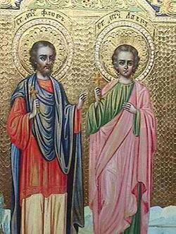 Εὐσεβείας τοῖς τρόποις ἐγγυμναζόμενοι, τοῦ μαρτυρίου τήν τρίβον διαπερᾶτε καλῶς, ὡς αὐτάδελφοι κλεινοί Χριστόν δοξάσαντες· ὅθεν γεραίρομεν ὑμᾶς, ὡς γενναίους Ἀθλητάς, Φλῶρε καί Λαῦρε βοῶντες· Ἀπό παντοίας ἀνάγκης, ῥύσασθε πάντας ἡμᾶς Ἅγιοι.