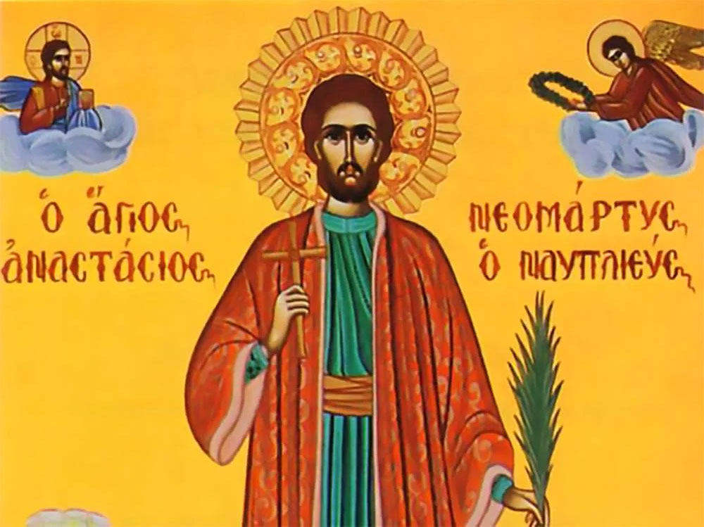 Ἅγιος Νεομάρτυς Ἀναστάσιος γεννήθηκε στό Ναύπλιο καί ἦταν Ζωγράφος. Ἐξισλαμίσθηκε ἀπό τούς Τούρκους καί ἀφοῦ ἦλθε στόν ἑαυτό του, ἀποκήρυξε τόν Ἰσλαμισμό καί ὁμολόγησε μέ παρρησία καί γενναιότητα τήν πίστη του στόν Χριστό. Οἱ Τοῦρκοι προσπάθησαν ἀρχικά νά τόν δελεάσουν καί ἐν συνεχεία τόν ἀπείλησαν μέ τήν ζωή του. Ἐκεῖνος ὅμως παρέμεινε ἀκλόνητος στή χριστιανική ὁμολογία του καί ὑπέστη μαρτυρικό θάνατο διά διαμελισμοῦ, τό ἔτος 1655 μ.Χ.