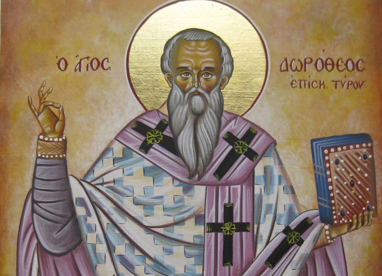 Ὡς δώρημα τέλειον, ἐκ τοῦ τῶν φώτων Πατρός, σοφίας τήν ἔλλαμψιν, ὡς Ἱεράρχης σοφός, ἐδέξω Δωρόθεε· ὅθεν καί πλεονάσας, τόν σόν τάλαντον μάκαρ, ἤθλησας ὑπέρ φύσιν, βαθυτάτῳ ἐν γήρᾳ, πρεσβεύων Ἱερομάρτυς, ὑπέρ τῶν ψυχῶν ἡμῶν.