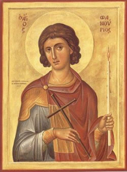 Ὡς ἄστρον ἀνέτειλας, τῇ Ἐκκλησίᾳ Χριστοῦ, καὶ πάντας κατηύγασας, φανερωθεὶς θαυμαστῶς, Φανούριε ἔνδοξε· ὅθεν τοῖς εὔφημοῦσι, τὴν σὴν ἄθλησιν Μάρτυς, νέμεις τῶν σῶν θαυμάτων, τῆν σωτήριον χάριν, πρεσβεύων τῷ Κυρίῳ, ὑπὲρ τῶν ψυχῶν ἡμῶν.