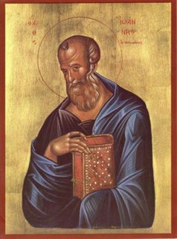 - Άκουσε, πνεύμα πονηρό. Σε διατάζει ο Ιωάννης, ο Απόστολος του Υιού του Θεού, άλλη φορά να μην ενοχλήσης άνθρωπον, ούτε να γυρίσης στον τόπο σου. Αλλά να φύγης έξω απ' αυτό το νησί και να περιπλανάσαι εδώ και εκεί.