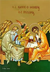 Ἀπόστολε Χριστῷ τῷ Θεῷ ἠγαπημένε, ἐπιτάχυνον ῥῦσαι λαὸν ἀναπολόγητον· δέχεταί σε προσπίπτοντα, ὁ ἐπιπεσόντα τῷ στήθει καταδεξάμενος. Ὃν ἰκέτευε Θεολόγε, καὶ ἐπίμονον νέφος ἐθνῶν διασκεδάσαι, αἰτούμενος ἡμῖν εἰρήνην, καὶ τὸ μέγα ἔλεος.