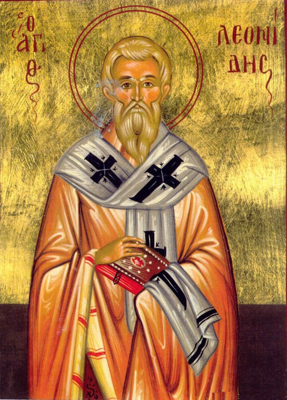 Ὡς Ἱεράρχης ἐνθεώτατος Πάτερ, μαρτυρικῶς τόν σόν ἐτέλεσας βίον, Ἱερομάρτυς Λεωνίδα ἔνδοξε· χαίρων γάρ ὑπήνεγκας, τῆς σαρκός τάς ὀδύνας· ὅθεν μεταβέβηκας, πρός οὐράνιον λῆξιν, ὑπέρ ἡμῶν πρεσβεύων πρός Χριστόν, τῶν ἐκτελούντων, τήν πάνσεπτον μνήμην σου.