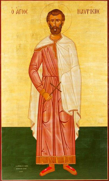 Γιά νά κάνει μάλιστα πικρότερο τό μαρτύριο τοῦ Μαυρικίου ὁ Μαξιμιανός, διέταξε κι ἀποκεφάλισαν μπροστά του τόν γιό του Φωτεινό. Αὐτούς δέ, τούς ἔστειλε σέ τόπο μέ βρώμικα βαλτόνερα, ὅπου τούς ἔδεσαν γυμνούς σέ πασσάλους καί τούς ἄλειψαν μέ μέλι. Οἱ μάρτυρες, ἔμειναν ἔτσι δεμένοι ἐπί 10 ἡμέρες, μέχρι που παρέδωσαν μαρτυρικά τό πνεῦμά τους στόν Θεό, ἀπό τά τσιμπήματα τῶν ἐντόμων.