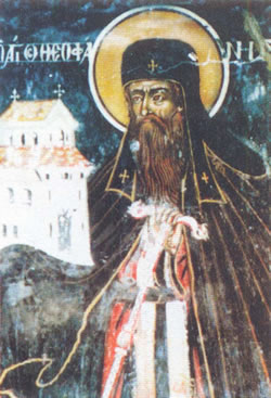 Βλαστός Ἰωαννίνων ἀνεδείχθης περίδοξος, καί θεῖος πολιοῦχος τῆς Ναούσης Θεόφανες· ὡς ἄγγελος γάρ ζήσας ἐπί γῆς, θαυμάτων ἐκομίσω δωρεάν, καί παρέχεις τάς ἰάσεις τοῖς εὐλαβῶς, προστρέχουσι τῇ σκέπῃ σου. Δόξα τῷ σέ δοξάσαντι Χριστῷ, δόξα τῷ σέ στεφανώσαντι, δόξα τῷ ἐνεργούντι διά σοῦ, πᾶσιν ἰάματα.