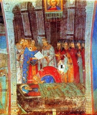 Ὁ τελευταῖος πρίγκιπας τῆς Σουζδαλίας, Μπόρις, τό ἔτος 1351 ἀποφάσισε νά ἱδρύσει στήν γενέτειρά του ἕνα μοναστήρι καί γιά τόν σκοπό αὐτό ἐπιθυμοῦσε νά λάβει τήν εὐλογία τοῦ ἡγουμένου τῆς μονῆς τῆς Ἀναλήψεως, Ἁγίου Διονυσίου. Ἀφοῦ ἔλαβε τήν εὐλογία, ὁ πρίγκιπας ζήτησε νά τοῦ ἀποστείλουν ἕνα μοναχό γιά νά ἐπιτηρεῖ τήν κατασκευή καί τήν ὀργάνωση τοῦ μοναστηριοῦ. Ὁ πρίγκιπας ἐπέστρεψε στή Σουζδαλία, μέ τήν εὐλογία καί τήν ὑπόσχεση τοῦ Ἁγίου Διονυσίου ὅτι θά τόν βοηθήσει.