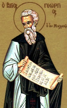 Ὡς θεῖον γεώργιον, δικαιοσύνης καρπούς, πλουσίως ἐξήνεγκας, δι’ ἐνάρετου ζωῆς, Γεώργιε Ὅσιε· σύ γάρ καθάπερ φοῖνιξ, ἐν ἀσκήσει βλαστήσας, τρέφεις τῇ δωρεᾷ σου, τήν Χριστοῦ Ἐκκλησίαν· ὅθεν ἀεί εὐχαρίστως, τιμᾷ τήν μνήμην σου.