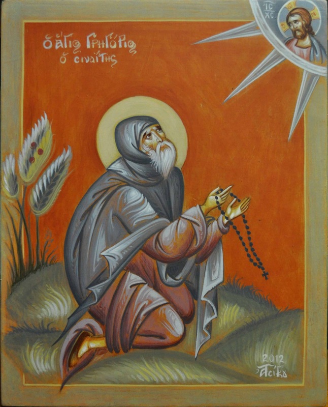 Ἐν Σιναίῳ πρότερον, ἀγγελικῶς βιοτεύσας, ἐν τῷ Ἄθῳ ὕστερον, περιφανῶς διαλάμπεις· πάντας γάρ πρός προσευχῆς θείας κτῆσιν, λόγῳ σου, σοφῶς καί ἔργῳ Πάτερ διδάσκεις· διά τοῦτό σε τιμῶμεν, ὡς θείας δόξης σκεῦος Γρηγόριε.