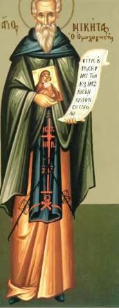 Ὡς νίκης ἐπώνυμος, τῶν θεοσδότων θεσμῶν, φρουρός ἀπερίτρεπτος καί στῦλος, ὤφθης στερρός, Νικήτα μακάριε· σύ γάρ τῆς ἀπαθείας, κοσμηθείς ταῖς ἀκτῖσιν, αἴγλῃ ὁμολογίας, τόν σόν βίον φαιδρύνεις. Καί νῦν τῶν σοί προσιόντων, δέχου τήν αἴνεσιν.