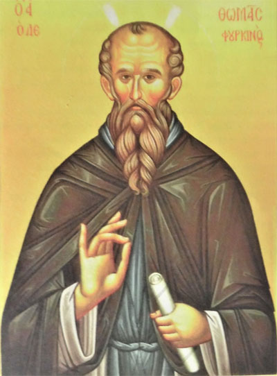 έ τήν προσευχή, τήν ἐξομολόγηση, τήν μελέτη, τήν ἀγρυπνία, τήν μεγάλη ἐγκράτεια καί τήν Θεία Κοινωνία, ἐνισχυόταν ἀπό τόν Θεό ὁ Ὅσιος Θωμάς ὅταν ἦταν νέος, ἀπό τούς μολυσμούς τῆς σάρκας καί τοῦ πνεύματος.Ἔζησε τόν 9ο μ.Χ. αἰώνα, καί ἡ πατρίδα του βρισκόταν στούς πρόποδες τοῦ ὄρους Κυμιναίου. Ἀνατράφηκε χριστιανικά ἀπό τήν παιδική του ἡλικία, διατηρώντας τήν πίστη καί τήν ἁγνότητά του ἀπό τή νεανική του ἀνάπτυξη. Κινούμενος ἀπό ἱερό πόθο ὁ Θωμάς, ἐπισκέφθηκε πολλά μοναστήρια καί ἀποκόμισε πολλές ἀρετές ἀπό τά ἐκεῖ μεγάλα ὑποδείγματα τῆς εὐσέβειας.
