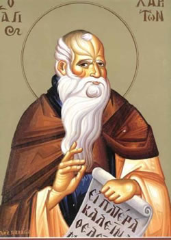 Χαρίτων τοῦ Πνεύματος, καταυγασθείς ταῖς αὐγαῖς, φωστήρ ἐχρημάτισας, τῆς ἐναρέτου ζωῆς, Χαρίτων μακάριε· σύ γάρ ὁμολογίᾳ, ἀληθείας ἐμπρέψας, ἔλαμψας ἐν ἐρήμῳ, ἐγκράτειας τοῖς πόνοις. Διό τῶν εὐφημούντων σε, Πάτερ μνημόνευε.