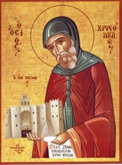 Ὅσιος Χριστόδουλος, κατά κόσμο Ἰωάννης, γεννήθηκε τό 1020 στή Νίκαια τῆς Βιθυνίας ἀπό εὐσεβεῖς γονεῖς, τόν Θεόδωρο καί τήν Ἄννα. Ἀνατράφηκε ἀπό τά νεανικά του χρόνια στήν μοναχική πολιτεία καί ἀσκήτεψε στόν Ὄλυμπο τῆς Βιθυνίας καί στήν Παλαιστίνη. Ἔπειτα ἀπῆλθε στό ὄρος Λάτρον τῆς Καρίας τῆς Μ. Ἀσίας, στή μονή τοῦ Στήλου, ὅπου ἵδρυσε βιβλιοθήκη καί συγκέντρωσε γύρω του πολλούς μοναχούς. Ἐξαιτίας τῆς παραμονῆς του στό ὄρος τοῦ Λάτρου, ὁ Ὅσιος Χριστόδουλος προσονομάζεται «Λατρηνός». Λόγω ὅμως τῶν βαρβαρικῶν ἐπιδρομῶν κατέφυγε, τό ἔτος 1079, στήν Πάτμο, ὅπου μέ τήν συνδρομή τοῦ αὐτοκράτορα Ἀλεξίου Α’ τοῦ Κομνηνοῦ (1081 – 1118) ἀνήγειρε τήν περιώνυμη μονή καί βιβλιοθήκη.