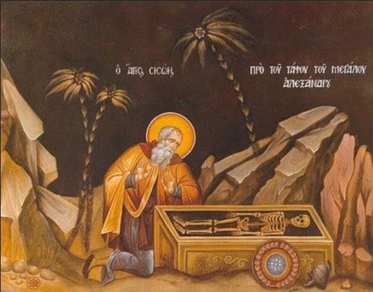Ἐκ παιδός γεωργήσας ζωήν τήν κρείττονα, τῶν κατ’ αὐτῆς ἐνεπλήσθης θεουργικῶν ἀγαθῶν, τῶν Ἀγγέλων μιμητά Σισώη Ὅσιε· ὅθεν ὡς ἥλιος λαμπρός, ἀπαυγάζεις τηλαυγῶς, ἐν ὥρᾳ τῆς σῆς ἐξόδου, δηλοποιῶν τήν σήν δόξαν, καί καταλάμπων τάς ψυχάς ἡμῶν.