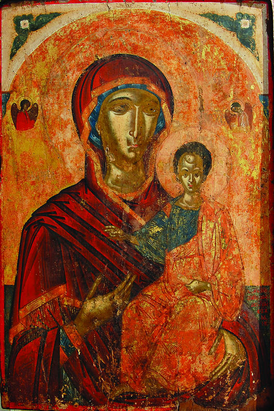 Ὡς δῶρον ἀτίμητον ἐν τῇ σῇ νήσῳ σεπτόν, Εἰκὼν ἡ περίπυστος πηγὴ θαυμάτων πολλῶν, ἐν Σκιάθῳ ἀνεύρηται. Ἣν ὡς Μεγαλομάταν, μετ᾿ εὐχῶν θερμοτάτων, πίστει τε καὶ ἐλπίδι, εὐσεβῶς μελωδοῦμεν, τὴν ὄντως Θεοτόκον καὶ ἀειπάρθενον.