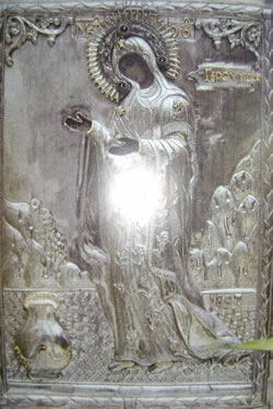 Το αργυρό κάλυμμα της εικόνας αναρτήθηκε τον 17ο αιώνα, έπειτα από εκφρασμένη επιθυμία της ίδιας της Παναγίας και με χρήματα Κωνσταντινουπολίτισσας αρχόντισσας.